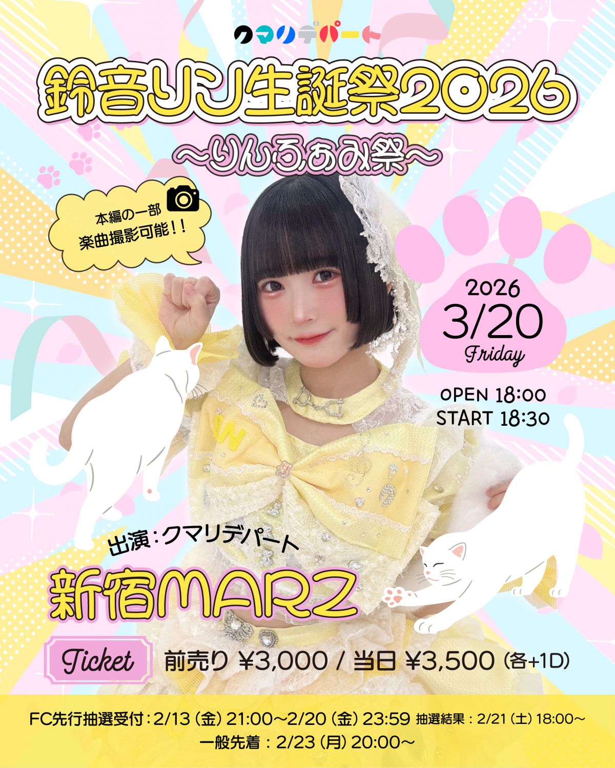 ・FC先行抽選受付期間:2/13(金)21:00〜2/20(金)23:59