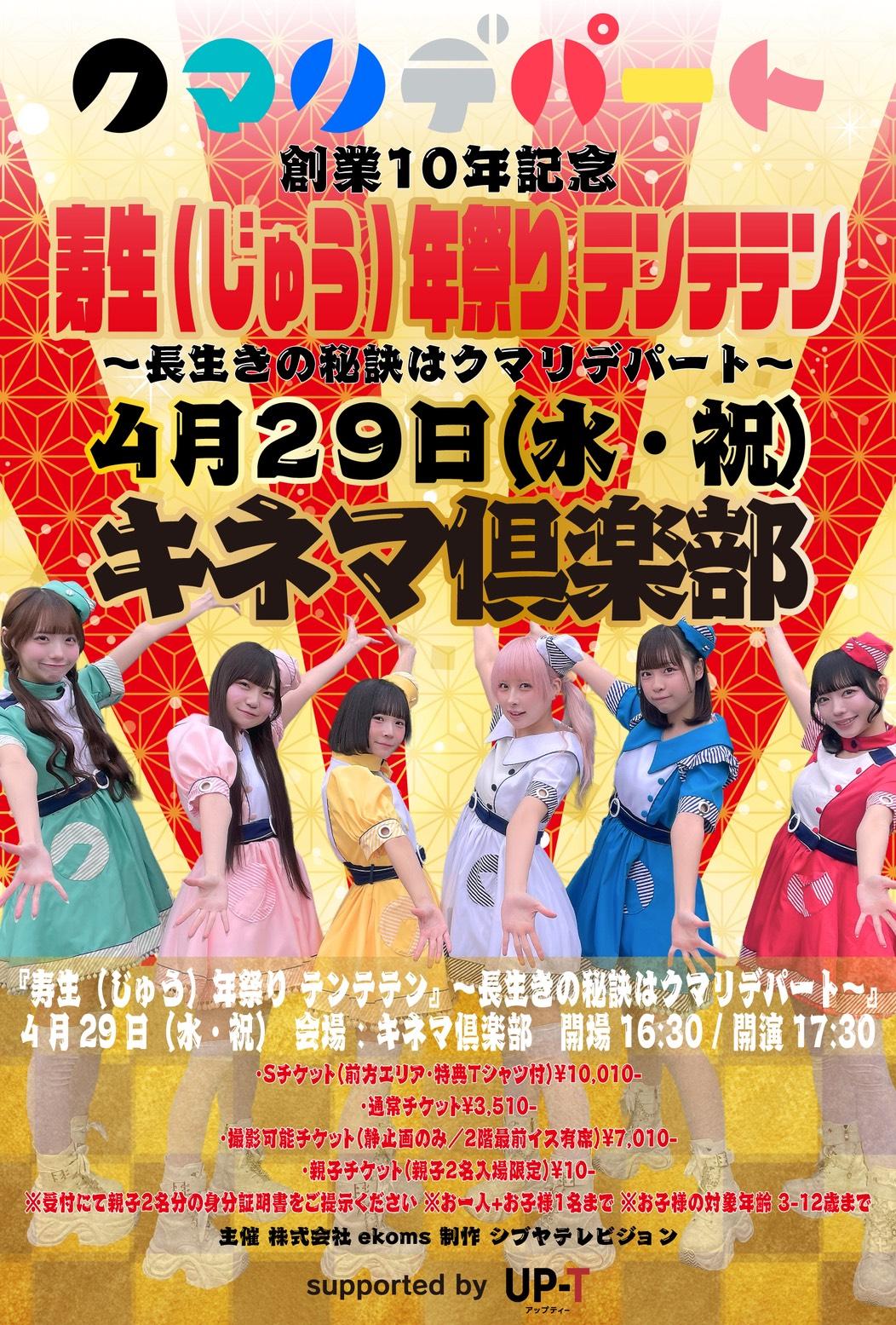 クマリデパート創業10年記念 『寿生(じゅう)年祭り テンテテン』 長生きの秘訣はクマリデパート FCチケット最速先行(抽選受付)のご案内です!
