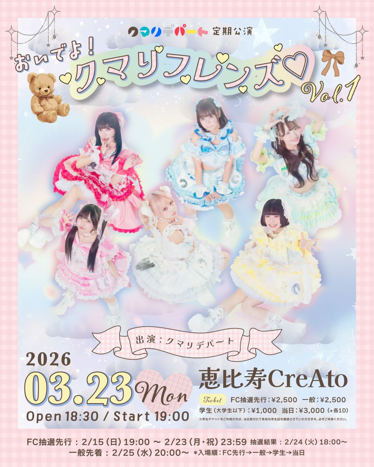 クマリデパート定期公演「おいでよ!クマリフレンズ♡ vol.1」 FCチケット最速先行(抽選受付)のご案内です!